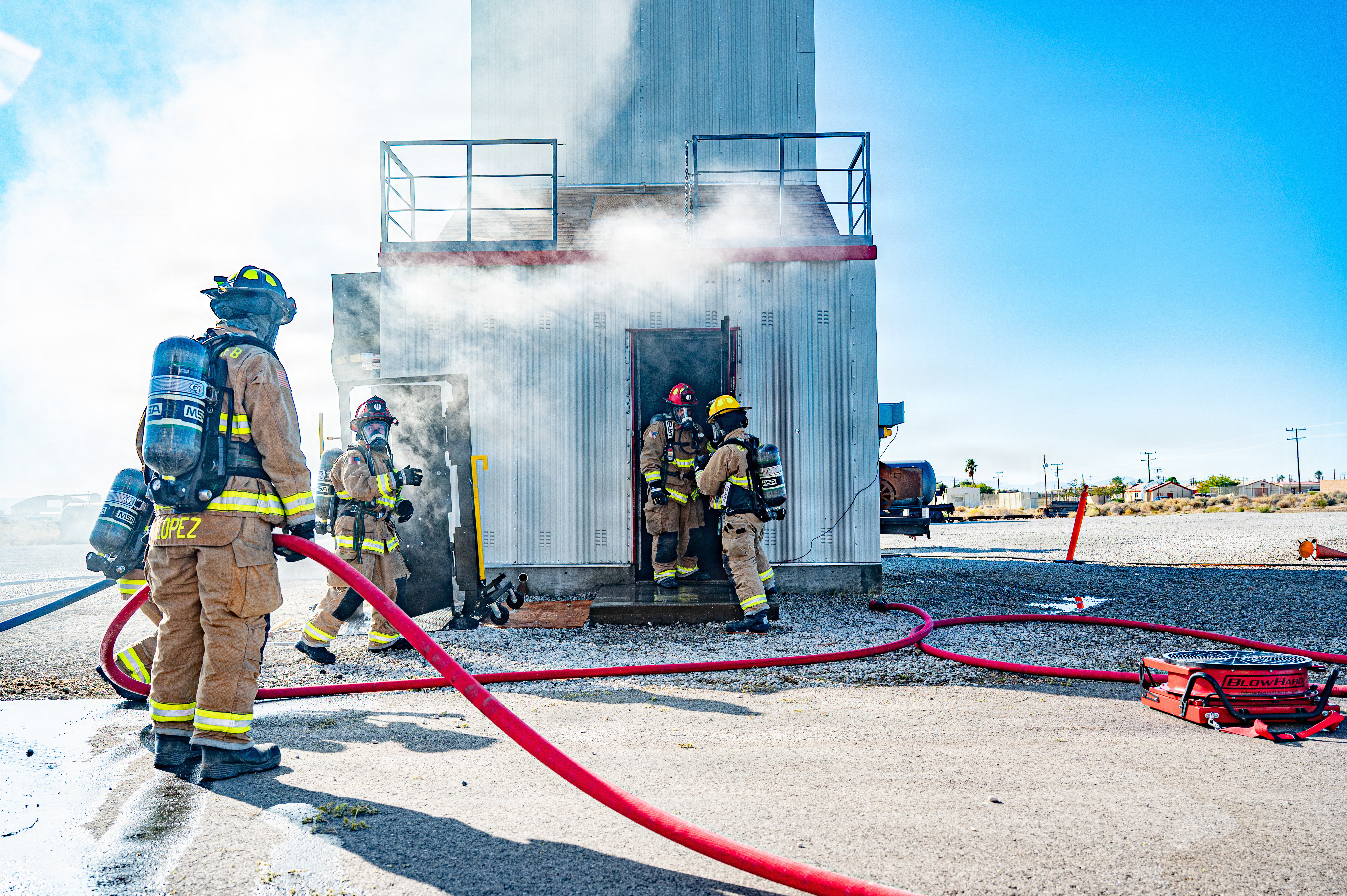 Members of the 812th Civil Engineer Squadron conduct structural fire training at Edwards AFB Oct 21. (Photos by Tech. Sgt. Robert Cloys, AFTC)