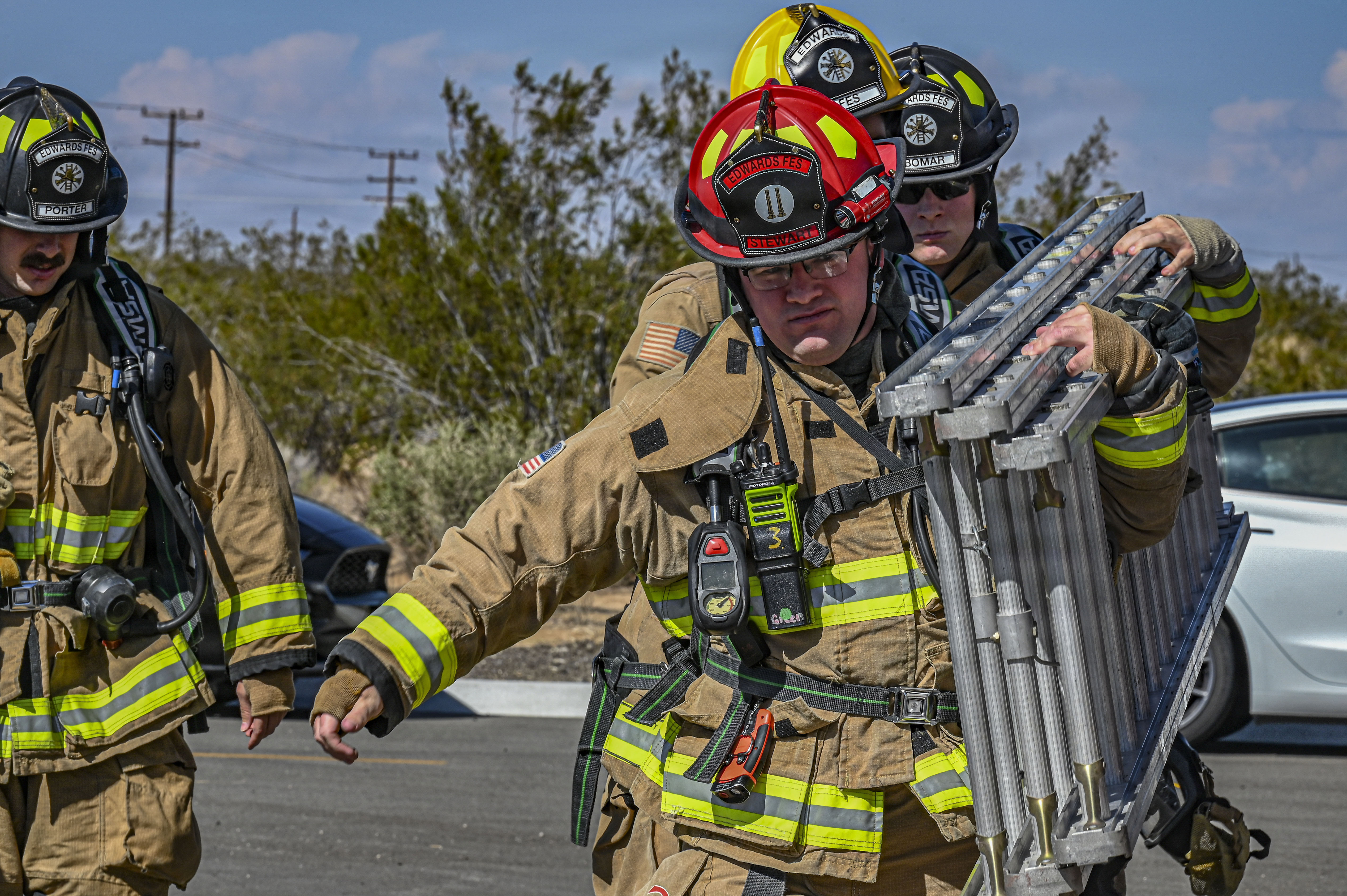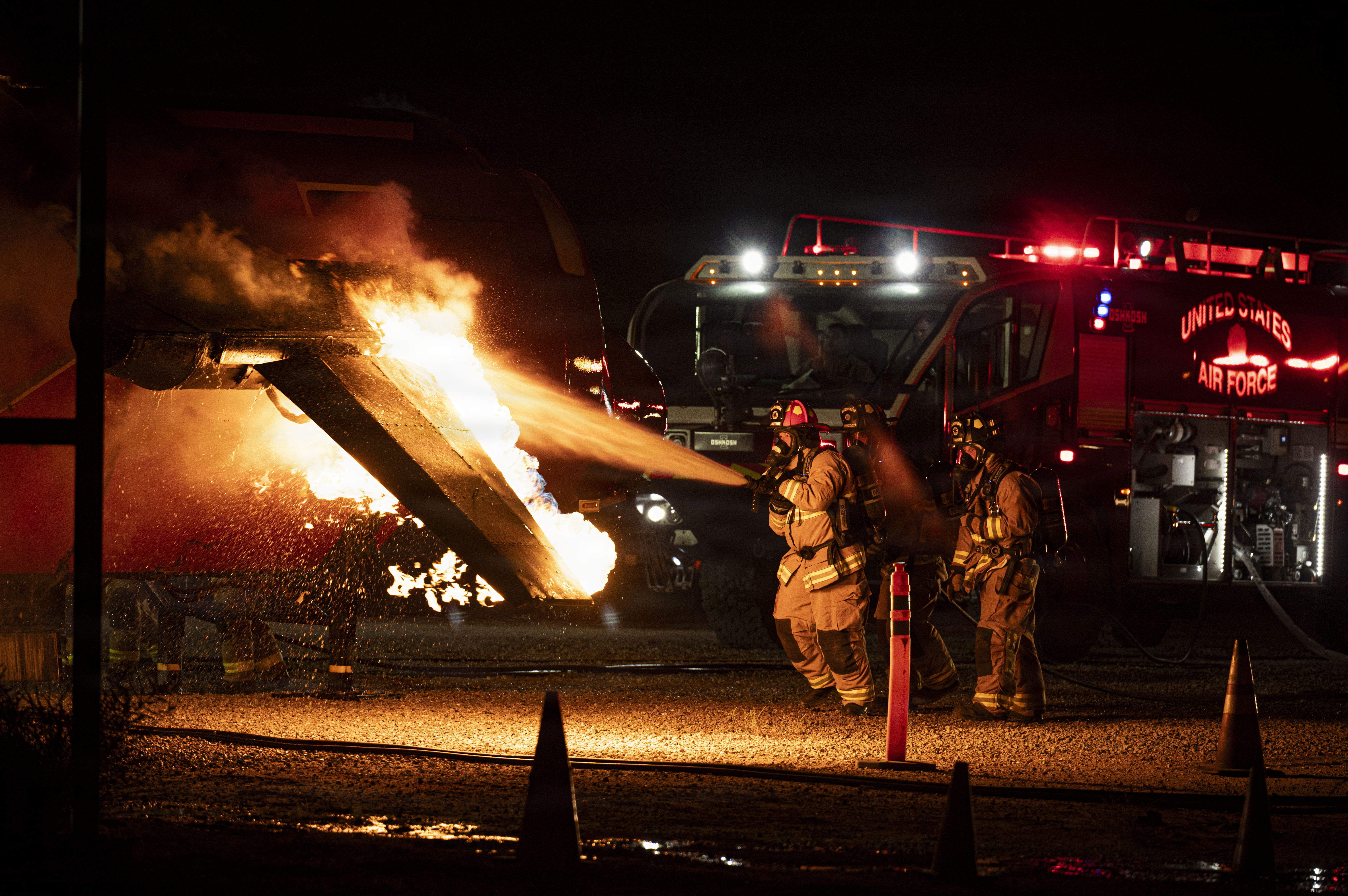 EDWARDS AIR FORCE BASE, Calif. -- During the recent government shutdown, the 412th Civil Engineer Group conducted a series of live-fire training exercises to enhance Airmen readiness, encompassing structural and nighttime aircraft fire scenarios. The training provides crucial hands-on experience in combating various types of fires, ensuring firefighters and 412th Test Wing leaders are prepared for real-world emergencies. Such rigorous training is essential for maintaining the Air Force's ability to respond effectively to fires, protecting personnel and vital assets while safeguarding the mission, regardless of external circumstances.