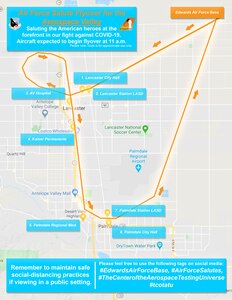 May 13, 2020 Edwards AFB to conduct flyover for front-line health care workers Aircraft from the 412th Test Wing will conduct a flyover for the local Aerospace Valley community on Thursday, May 14. The flyover is in honor of and to show gratitude to the front-line health care workers helping fight the COVID-19 pandemic.