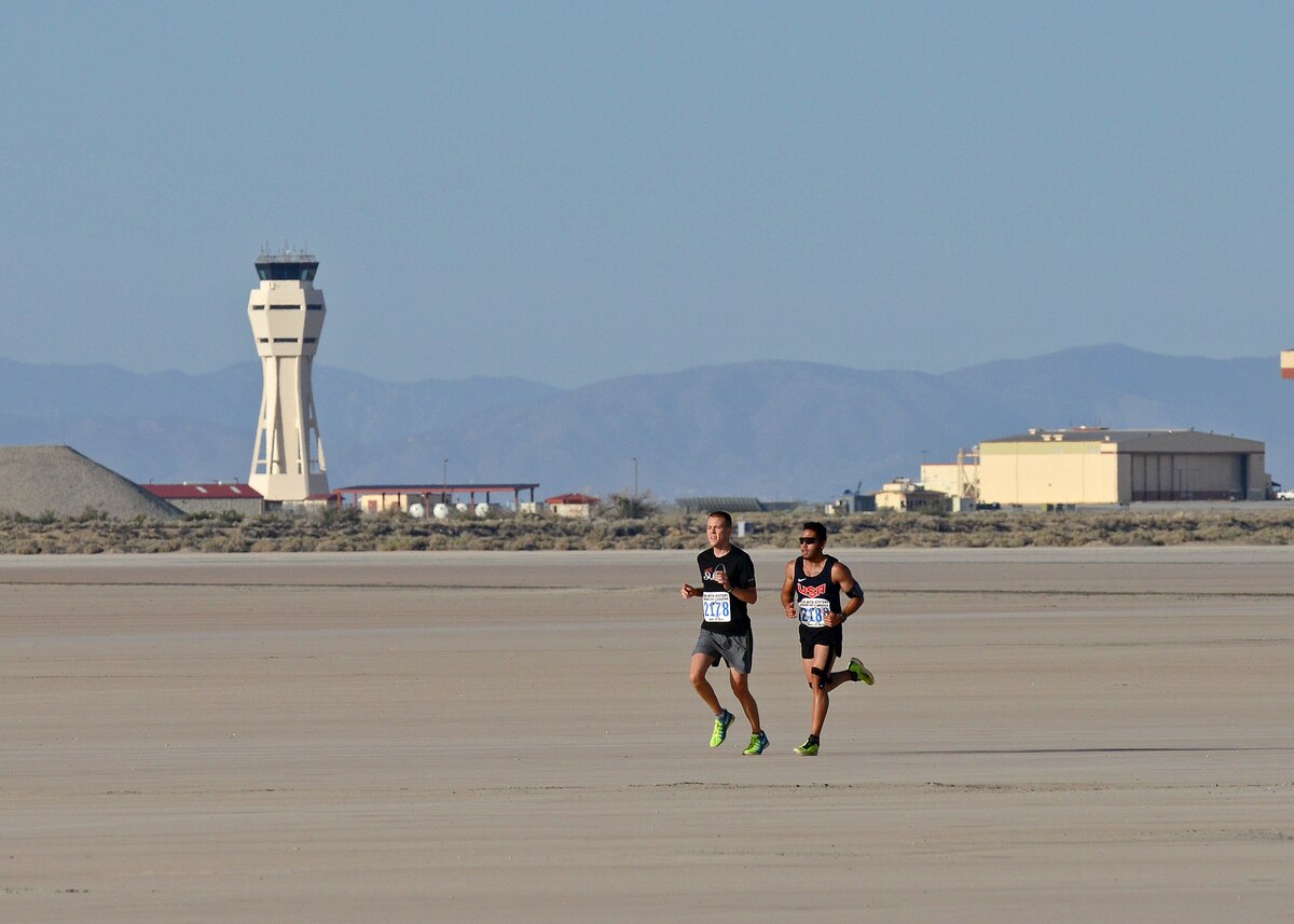Team Edwards makes 'history' with inaugural run Published May 21, 2014 By Jet Fabara 412th Test Wing Public Affairs EDWARDS AIR FORCE BASE, Calif. -- Making history is something Edwards has become accustomed to and May 17 the base welcomed approximately 500 runners to be a part of another milestone in the base's first-ever "Run with History" Half Marathon, 10K and 5K run. The historic run kicked off early morning at 7 a.m. with an F-18 Mission Support Aircraft fly-by from the NASA Armstrong Flight Research Center. The runners then took to the Edwards flightline and continued on to the Rogers Dry Lakebed and on the Edwards runway. "We wanted to establish a signature event for Edwards while including the historic lakebed. Additionally, it was a perfect opportunity to foster community relations with the public outside Edwards while promoting health and fitness," said Pete Smith, 412th Force Support Squadron, Edwards Fitness and Sports Center director, and race director for the marathon. "Not everyone gets to run on historic locations like the Edwards lakebed and active runways and see the aircraft that are tested here. That's what makes our run so unique." Of the 500 runners who registered, 462 showed up to run and the event had approximately 200 spectators, according to Smith. "I decided to participate in the run for many reasons. I signed up because I was interested in exploring a part of the base that I had never seen before, being in the medical clinic you're not really close to all the planes or flightline, so you don't really get to see part of what makes Edwards so unique. Seeing it through this inaugural race made me want to be a part of such a special event," said Airman 1st Class Austin Duncan, 412th Medical Operations Squadron aerospace medical technician, who finished first in the men's division in the half marathon. "Since I'm also running the San Francisco Half Marathon in July I thought this race would be a good test to gauge how my fitness was coming along." To accommodate the more than 460 runners, Smith said it took the colossal support of personnel from the 412th Security Forces Squadron, the 412th Medical Group, the 412th Civil Engineering Directorate, Media Fusion, the 412th Force Support Squadron, the 412th Operations Group, the 412th Safety Office, and various 412th Test Wing organizations. "Almost every unit on base had a hand in making this Team Edwards event a success," said Smith. "Without everyone's involvement it wouldn't have turned out as well as it did." "I wasn't sure what to expect with this Edwards run because I knew there was limited availability. Overall, I was very happy with the set-up. I thought the course was nice, very interesting and definitely unique. Not many people can say they've run on an Edwards flightline," added Duncan. "I also have to commend the support of those at the water stations and at the medical station. Everything was spaced out so well and the volunteers were really helpful and motivating so altogether I had a really good time." As for the next Edwards run, Smith said the date has yet to be determined, but Edwards event coordinators are planning one for next year in order to open the event up to more runners and provide many more surprises for those in attendance. For more information on individual times and top finish times, go to www.infinitytiming.com. Half Marathon top finishers Female Brooke Allen-Burnstein, Las Vegas, Nev. Time: 01:56:14.89; BIB#: 2056 Male Airman 1st Class Austin Duncan, Edwards, Calif. Time: 01:27:14.50; BIB#: 2178 10K top finishers: Female Abby Brayton-Chung, Lancaster, Calif. Time: 00:46:50.76; BIB#: 142 Male Koo Justin, Lancaster, Calif. Time: 00:40:55.74; BIB#: 103 5K top finishers: Overall 1. Alasdair Mackenzie; Phelan, Calif. Time: 00:20:46.52; BIB#: 1035 (Top Male) 2. Daniel Hrast, Lancaster, Calif. Time: 00:21:18.41; BIB#: 1114 3. Tracy Jones, Rosamond, Calif. Time: 00:21:56.38; BIB#: 1116 (Top Female) 4. Bryce Davis, Rosamond, Calif. Time: 00:22:30.07; BIB#: 1037 5. Paul Stephens-Green; Tehachapi, Calif. Time: 00:22:48.84; Pace: 07:21; BIB#: 1073