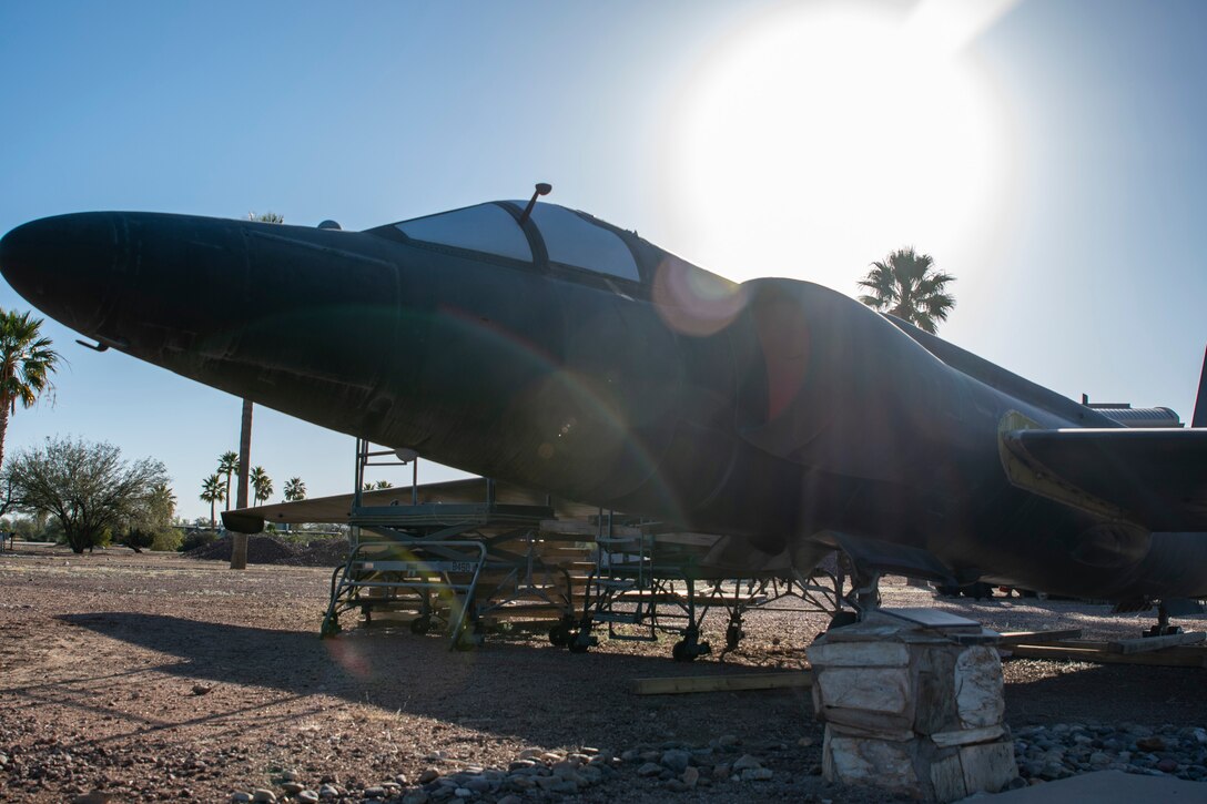A static of a U-2S Dragon Lady is on display at Heritage Park at Davis-Monthan Air Force Base, Arizona, March 22, 2022. In 1963, U-2s were assigned to the 4028th Strategic Reconnaissance Weather Wing at DM flying global missions. (U.S. Air Force photo by Staff Sgt. Kristine Legate)